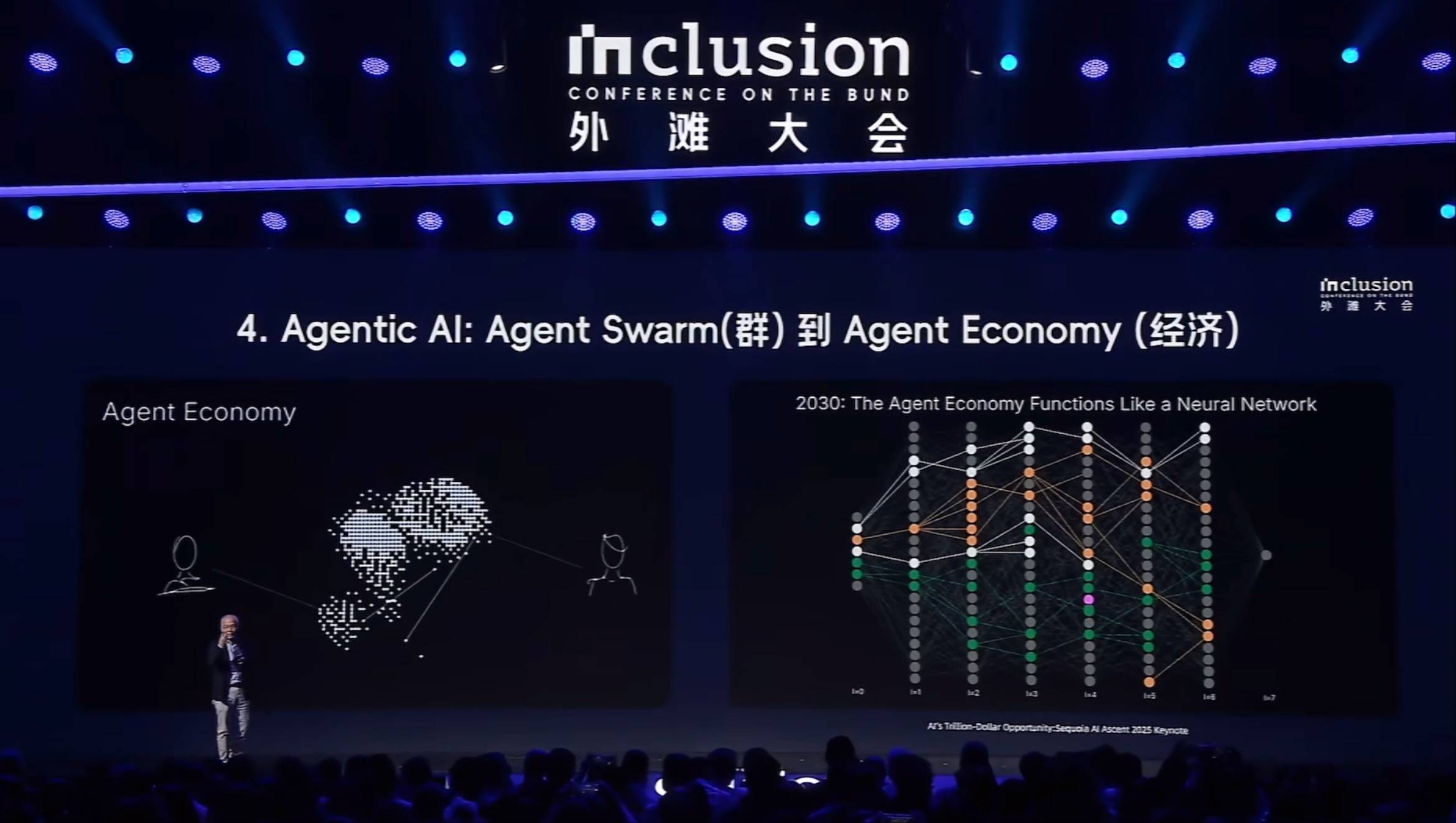 最后他谈到自己对Agent发展的思考,当一个人和一堆Agent组成一个公司,会实现前所未有的效率跃升,但这需要引发社会对年轻人就业、社会结构、教育体系变化的思考。