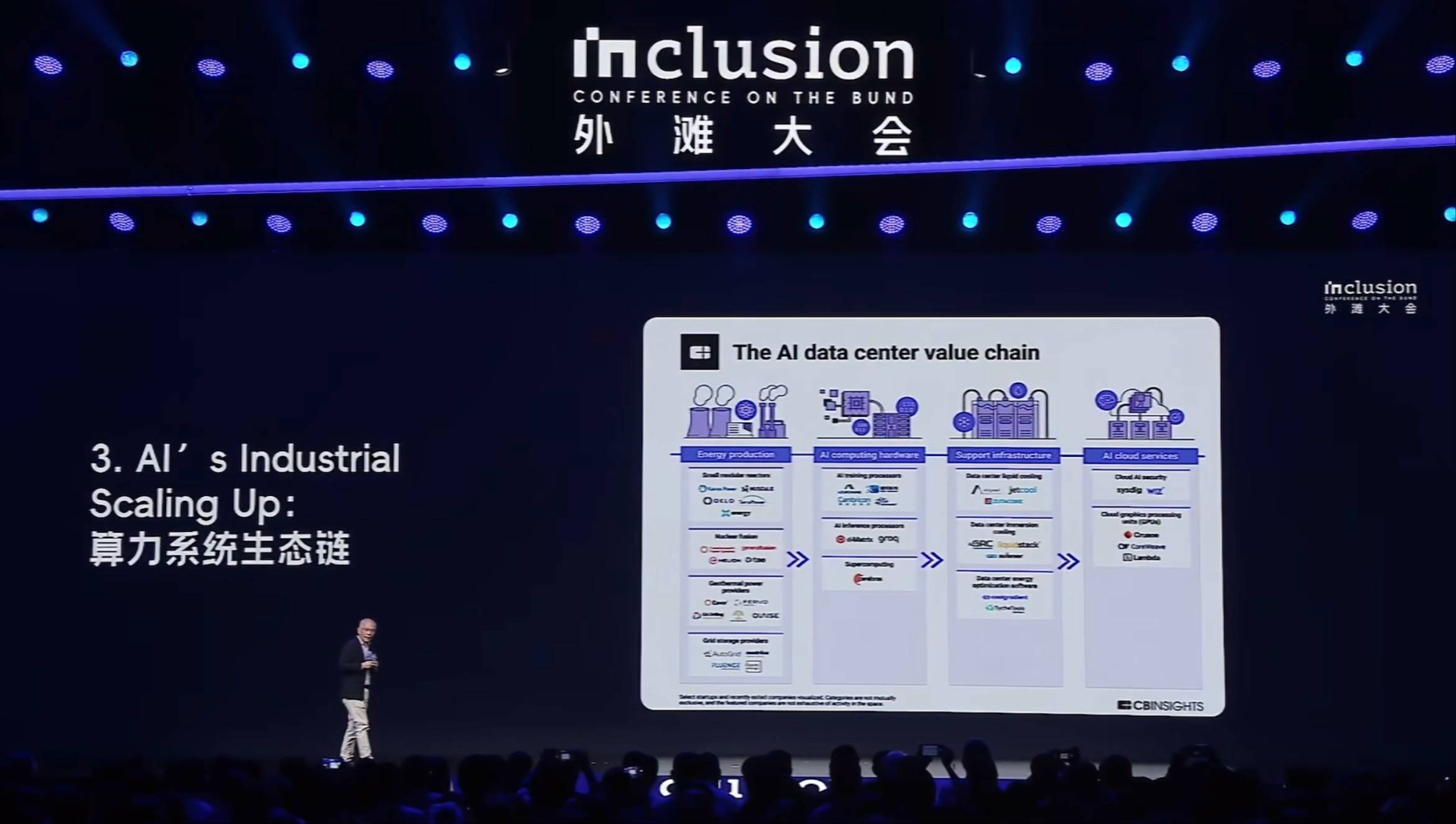 张宏江将模型带动底层芯片、整个云计算产业、电力、能源产业发展的生态,称作算力系统生态链(AI’s Industrial Scaling Up)。